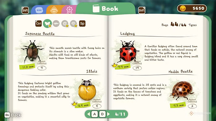 Mỗi khi nhờ Kazuko ghi thêm mục mới, người chơi sẽ nhận được một ít Yên từ cô ấy. Phần thưởng này tiếp tục cho đến khi hoàn thành đủ 44 loài côn trùng trong sổ.
