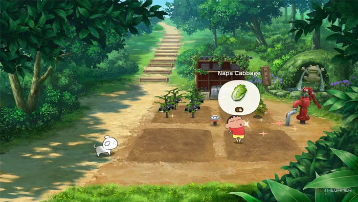 Không phải trò chơi thư giãn nào cũng cần có yếu tố làm nông, nhưng việc trồng trọt đôi khi lại là một điểm cộng dễ thương và Shin chan: Shiro and the Coal Town tiếp tục xu hướng đó, với một chút biến tấu. Trong game, người chơi không chỉ thu hoạch rau củ mình trồng, mà còn có nhiều loại mọc hoang trong làng để tìm và nhặt.