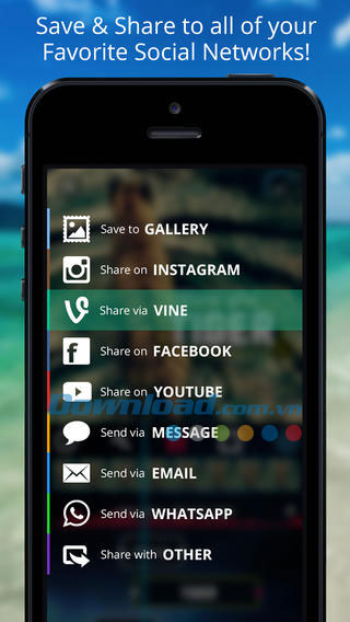 Lưu video vào thư viện hệ thống hoặc chia sẻ trên những mạng xã hội mà bạn yêu thích, bao gồm Vine và Instagram.