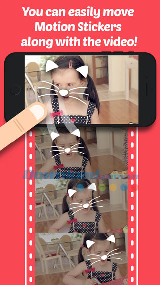 Người dùng Vimo có thể di chuyển, phóng to thu nhỏ hay xoay những sticker này ngay trong video, thậm chí là có thể quay những chuyển động này trong thời gian thực khi đang phát video.