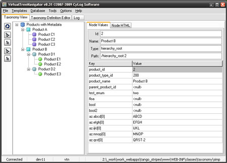 VirtualTreeNavigator là một chương trình phân loại và duyệt cơ sở dữ liệu dùng để hiển thị dữ liệu ở dạng cấu trúc phân cấp. Nó là một tiện ích phân loại trực quan, có thể thể hiện được cấu trúc của hệ cơ sở dữ liệu bất kì thành 1 hệ được phân loại nhờ sử dụng những thẻ XML đơn giản và trực quan.