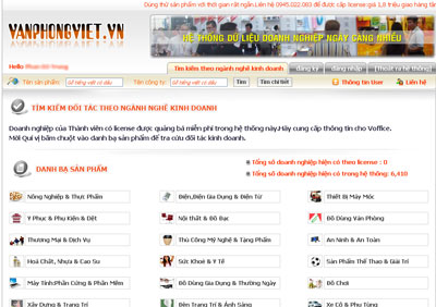 Voffice là phần mềm tra cứu đối tác kinh doanh giúp các doanh nghiệp Việt Nam tìm kiếm đối tác kinh doanh trong và ngoài nước một cách dễ dàng với chi phí thấp nhất. Phần mềm cung cấp thông tin doanh nghiệp uy tín tại nhiều quốc gia có quan hệ làm ăn tốt với Việt Nam, trình bày thông tin song ngữ Anh-Việt, giúp tiết kiệm thời gian và chi phí cho doanh nghiệp.