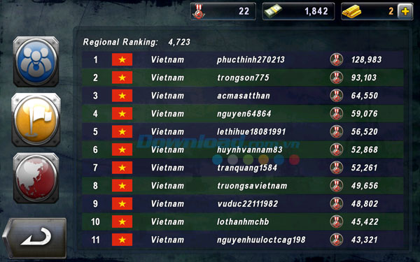 Bảng xếp hạng người chơi điểm cao tại khu vực và thế giới