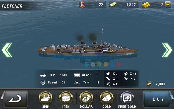 Lưu ý, Warship Battle cho phép tải về và chơi hoàn toàn miễn phí, tuy nhiên, bạn cũng có thể lựa chọn mua các vật phẩm trong game bằng tiền thật.