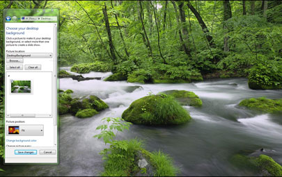 Bộ theme Dream Flow mang đến cho Windows 7 những hình ảnh thiên nhiên nên thơ, lãng mạn với những khu rừng xanh mướt cùng dòng suối róc rách.