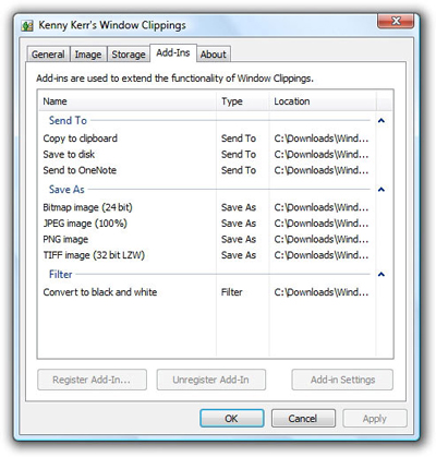 Windows Clippings giúp bạn có thể lưu một loạt các định dạng, phần mềm này gồm có một tính năng quan trọng cho việc capture màn hình của Vista - khả năng capture các window shadow. Để sử dụng nó, nhấn phím Print Screen, kích cửa sổ bạn muốn capture, sau đó kích đúp. Bạn có thể chỉ thị chương trình nhắc nhở mỗi khi muốn chọn nơi muốn lưu file hoặc có thể thiết kế một thư mục nào đó để nhận toàn bộ các screen shot. Với những việc capture màn hình cơ bản, phiên bản miễn phí hoàn toàn đáp ứng được yêu cầu này. Tuy nhiên nếu muốn capture con trỏ chuột, phác thảo các vùng cụ thể của màn hình hoặc sử dụng một số tính năng khác thì bạn phải trả tiền để có được các tính năng đó.