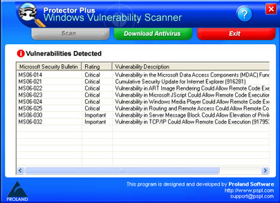 Giao diện của tiện ích này sẽ xuất hiện và tự động thực thi công việc dò tìm mọi điểm yếu của hệ điều hành. Hãy nhắp chuột lên nút OK khi bắt gặp hộp thoại Protector Plus - Windows Vulnerabilities Scanner.