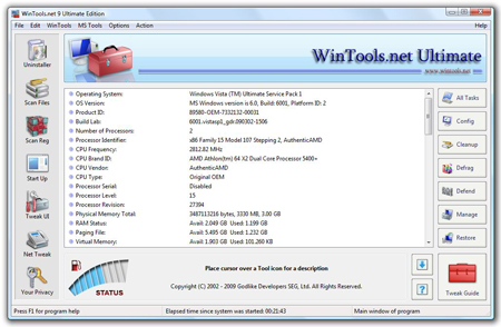 WinTools.net Ultimate Edition rất phù hợp để tăng hiệu suất làm việc của hệ điều hành Windows. WinTools.net Ultimate quét dọn và loại bỏ những phần mềm không muốn trên đĩa cứng và những khóa registry đã hết hiệu lực trong registry. WinTools.net cho bạn khả năng điều khiển các tiến trình khởi động cùng Windows, theo dõi bộ nhớ và đưa ra năng lượng để tối ưu hóa desktop và thiết lập hệ thống. Chương trình còn giúp tăng tốc Internet và tính ổn định cho đường truyền Internet của bạn. Nó bảo đảm được những dữ liệu riêng tư của bạn và bảo vệ những thông tin nhạy cảm một cách an toàn.