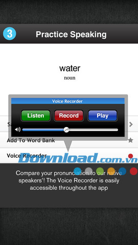 Sự tiện ích và hấp dẫn của ứng dụng WordPower Learn Vietnamese Vocabulary Free còn ở chỗ bạn có thể học tiếng Việt kèm ghi âm audio với giọng phát âm của người Việt bản địa, kết hợp cùng bộ ghi âm giọng nói để người dùng có thể trau dồi khả năng phát âm hoàn hảo của mình bất cứ lúc nào và bất cứ nơi đâu.