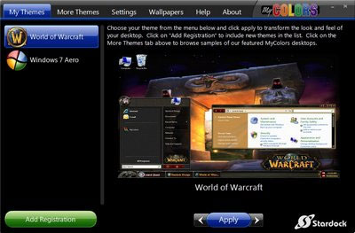 Download và tiến hành cài đặt như phần mềm bình thường. Sau khi kích hoạt ứng dụng, từ giao diện chính của phần mềm, chọn tab ‘My Themes’. Tại đây nhân vào mục ‘World of Warcraft’ rồi nhấn nút ‘Apply’ bên dưới.