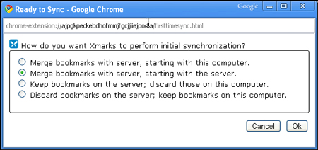 Ngoài ra, Xmarks còn bổ sung thêm 2 tính năng cực kỳ hay cho Google Chrome là trong trường hợp bạn muốn xóa toàn bộ bookmark trên mạng thì bạn đánh chọn mục Discard bookmarks on the server; keep bookmarks on this computer, lúc này bookmark sẽ chỉ còn một bản lưu duy nhất trong máy tính (tùy chọn này giúp bạn bảo vệ các trang web bookmark của mình khỏi bị người khác dòm ngó hoặc xóa chúng đi sau khi bạn đã thực hiện xong thao tác phục hồi). Nếu bạn sử dụng bookmark trong một máy tính tạm, thì sau khi tải nó từ server của Xmarks về, bạn đánh chọn mục Keep bookmarks on the server; discard those on this computer để xóa các bookmark trong Google Chrome ở máy tính đi để không cho người khác sử dụng máy tính sau này biết được các bookmark của bạn.