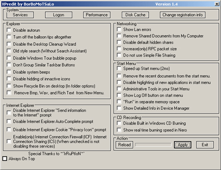 XPredit cho phép bạn chỉnh sửa nhiều khóa trong registry một cách an toàn và dễ dàng mà không cần phải nhớ tên các khóa rắc rối. Với chương trình này, bạn có thể tắt chế độ autorun, tăng tốc menu Start, ẩn những văn bản mới mở gần đây hay tối ưu thời gian khởi động và tắt máy, …