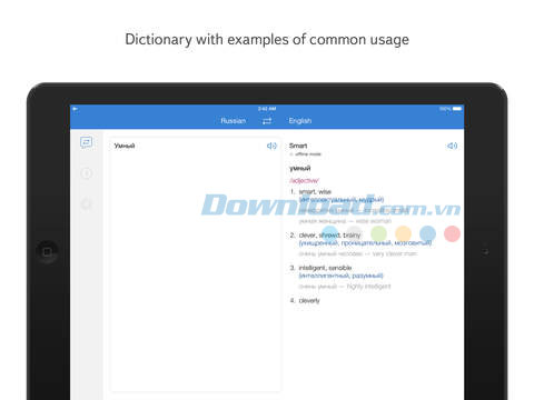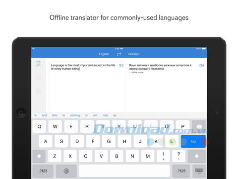 Yandex Translate là một ứng dụng biên dịch đa ngôn ngữ, hỗ trợ dịch từ tiếng Nga sang tiếng Anh, Đức, Pháp, Tây Ban Nha và Ý mà không cần kết nối Internet. Mặc dù tích hợp nhiều dữ liệu từ điển và công cụ biên dịch nhưng Yandex Translate sở hữu dung lượng khá nhỏ gọn chưa tới 20 MB. Tất cả những gì bạn cần làm chỉ là tải ngôn ngữ cần sử dụng và bật chế độ offline trong phần thiết lập.