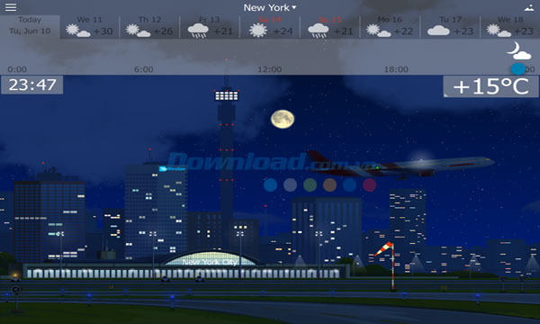 YoWindow là một ứng dụng dự báo thời tiết có thiết kế thanh lịch và đẹp mắt, giúp đưa ra những dự báo về thời tiết trong thành phố nơi bạn sống (hoặc bất kỳ thành phố nào khác) tại bất kỳ thời điểm nào. Tính năng nổi bật nhất của YoWindow for Android là giao diện tuyệt đẹp, cho phép bạn kiểm tra tình hình thời tiết trong thành phố chỉ bằng cách nhìn vào màn hình. Ngoài ra, bằng cách vuốt từ trái sang phải, bạn có thể thấy thời tiết sẽ như thế nào trong vài giờ tới.