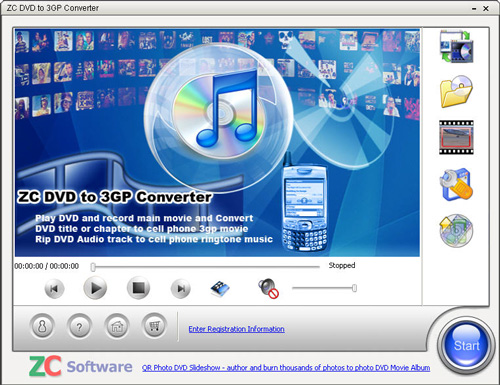 ZC DVD to 3GP Converter là phần mềm rip DVD rất dễ sử dụng,c ó thể chuyển đổi DVD sang định dạng phim 3GP ví như 3gp h263, 3g2 h263, 3gp mp4, 3g2 mp4, và bạn cũng có thể rip audio track DVD rồi mã hóa sang định dạng nhạc mp3, aac, amr. Đây thực sự là giải pháp tốt nhất trong việc copy phim DVD sang điện thoại di động và chuyển đổi audio track sang thành nhạc chuông cho điện thoại. Với phần mềm ZC DVD to 3GP Converter, bạn đã có thể biến chiếc điện thoại di động của mình trở thành trung tâm lưu trữ đa phương tiện, ví như một nhà hát di động và máy chạy Mp3.