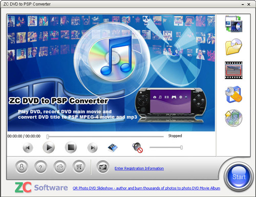 ZC DVD to PSP Converter không chỉ là phần mềm rip DVD nhanh chóng và rất dễ sử dụng, mà còn là phần mềm chạy DVD, ghi âm DVD và rip audio. Phần mềm này có thể chạy, ghi lại phim DVD bạn đang xem, chuyển đổi tiêu đề và chương DVD, rip audio track, chuyển đổi sang định dạng phim Sony PSP/PS3 và nhạc MP3. Đây là giải pháp tốt nhất trong việc copy video phim DVD và audio DVD với chất lượng cao cùng kích cỡ file nhỏ gọn sang thiết bị Sony PSP. Thiết kế giao diện người dùng trực quan giúp công việc copy DVD và rip audio DVD trở lên dễ dàng hơn. Mặc dù không có bất kì kiến thức nền tảng nào, bạn vẫn có thể đăng tải và download các bộ phim PSP. Với phần mềm ZC DVD to PSP Converter, bạn đã có thể copy DVD và chuyển đổi DVd sang định dạng Sony PSP/PS3 mpeg4 và mp3 rồi thưởng thức chúng trên thiết bị của mình ở bất kì lúc nào, ở bất cứ nơi đâu.