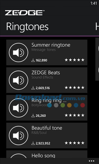 ZEDGE Ringtones & Wallpapers for Windows Phone cung cấp kho nhạc chuông và hình nền tuyệt đẹp, đa phong cách và hoàn toàn miễn phí cho các thiết bị Windows Phone.