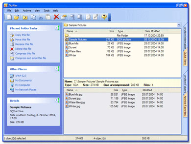 ZipStar là tiện ích nén file miễn phí dành cho người dùng cá nhân. ZipStar được dùng để nén và giải nén các file có định dạng SQX, CAB và ZIP. ZipStar sử dụng công nghệ nổi tiếng Squeez, một công nghệ nén và giải nén nhanh nhất, vốn được dùng trong các chương trình SpeedCommander và Squeez.